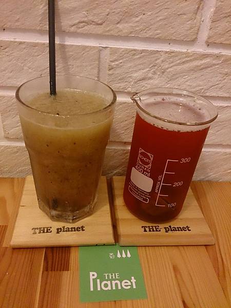左邊奇異果汁,右邊花茶(杯子好特別,是實驗室用的量杯~)